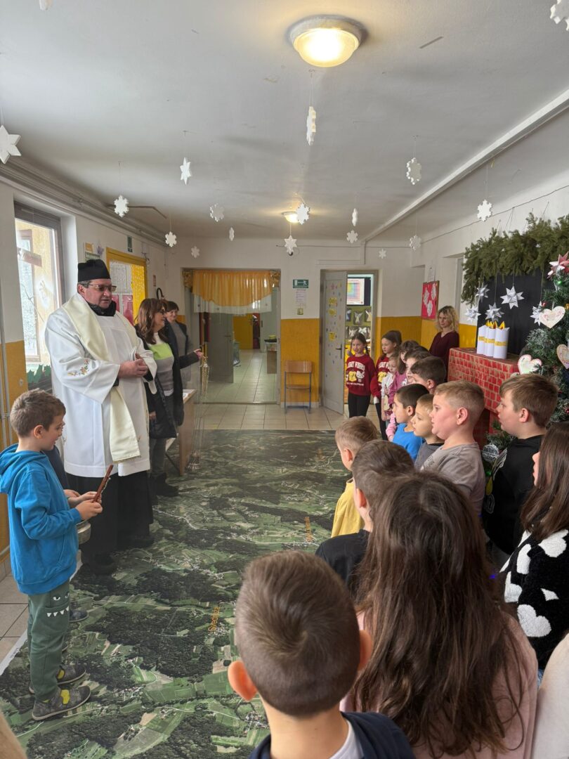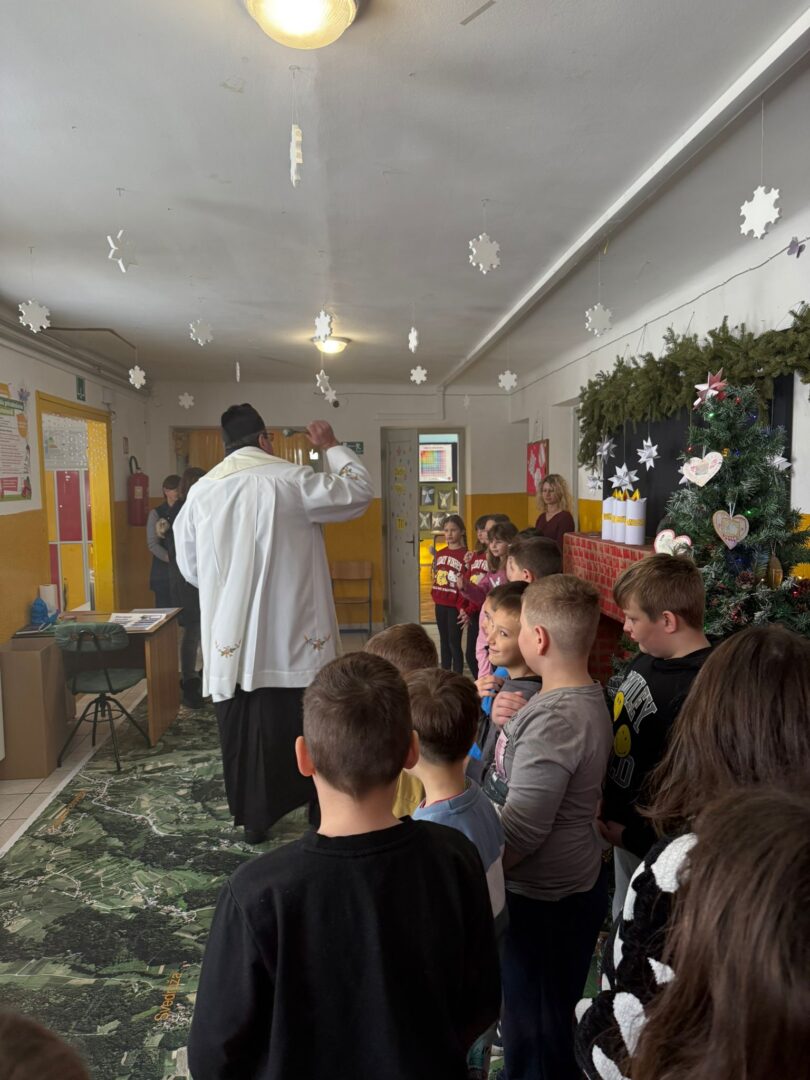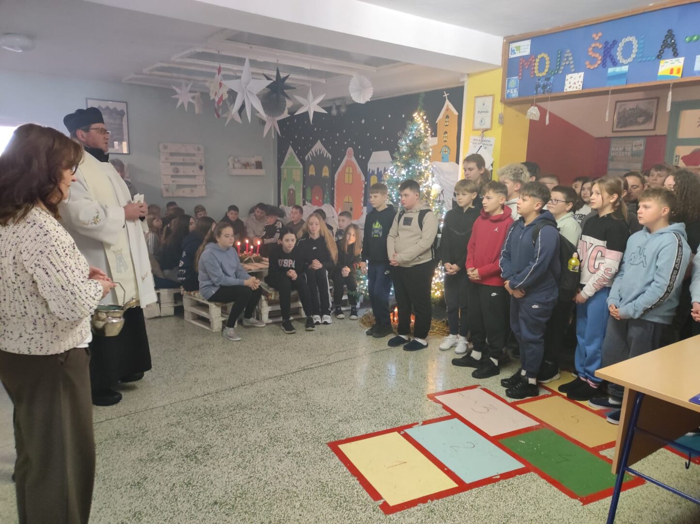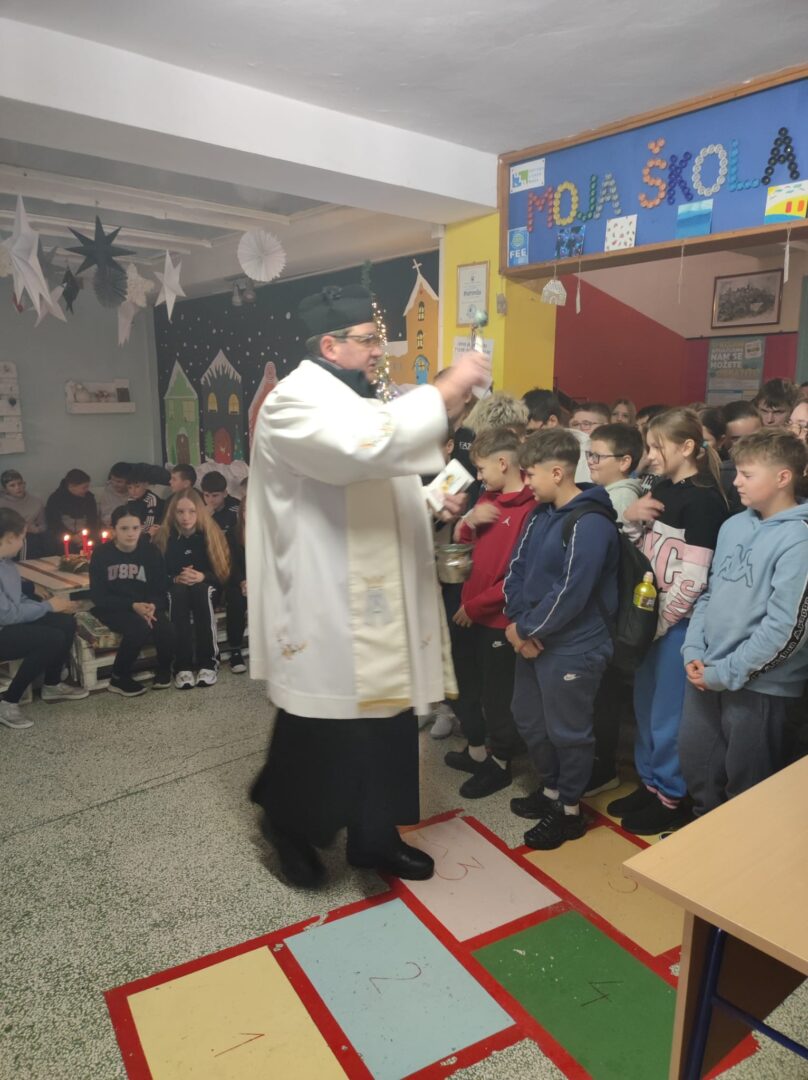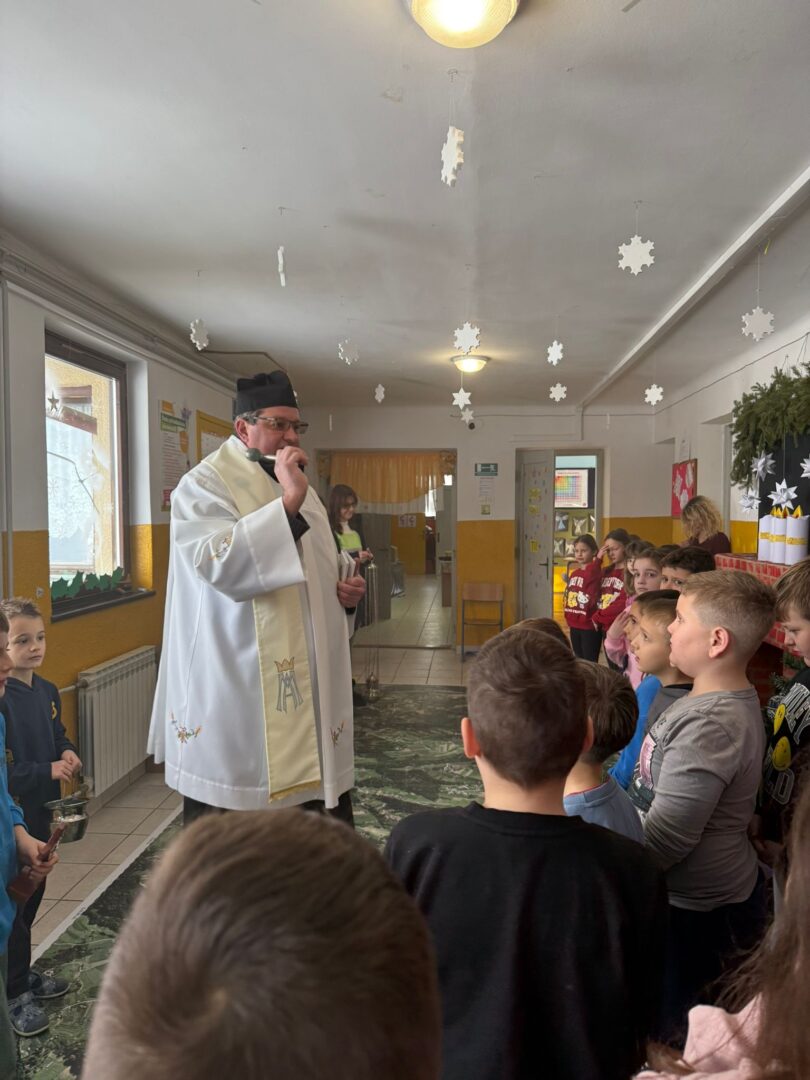 Ovaj tjedan posjetio nas je vlč. Anđelko Horvatić iz naše župe. Blagoslovio je obje škole, matičnu i područnu te učenicima i djelatnicima zaželio uspješnu godinu. Učenicima je podijelio prekrasne naljepnice s molitvama za obitelj. Zajedno smo molili i pjevali.