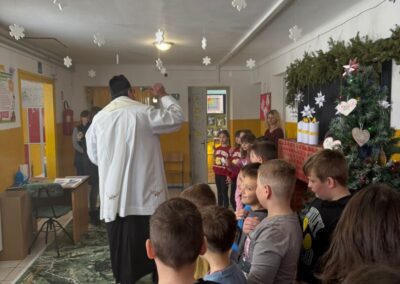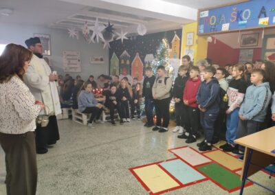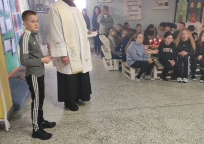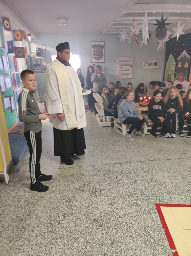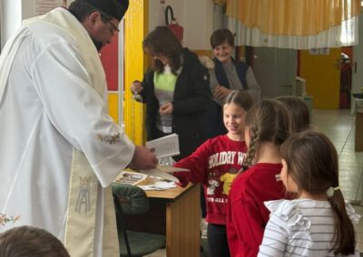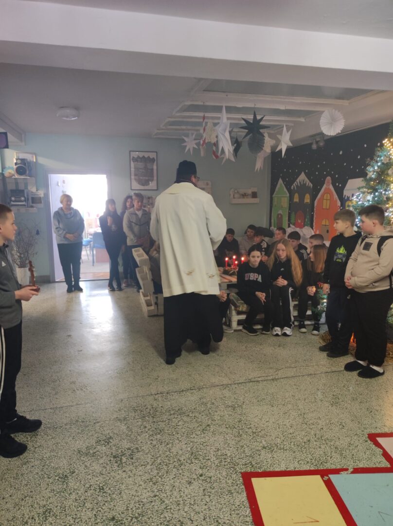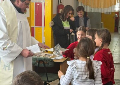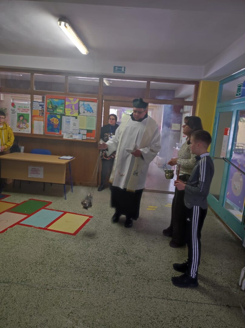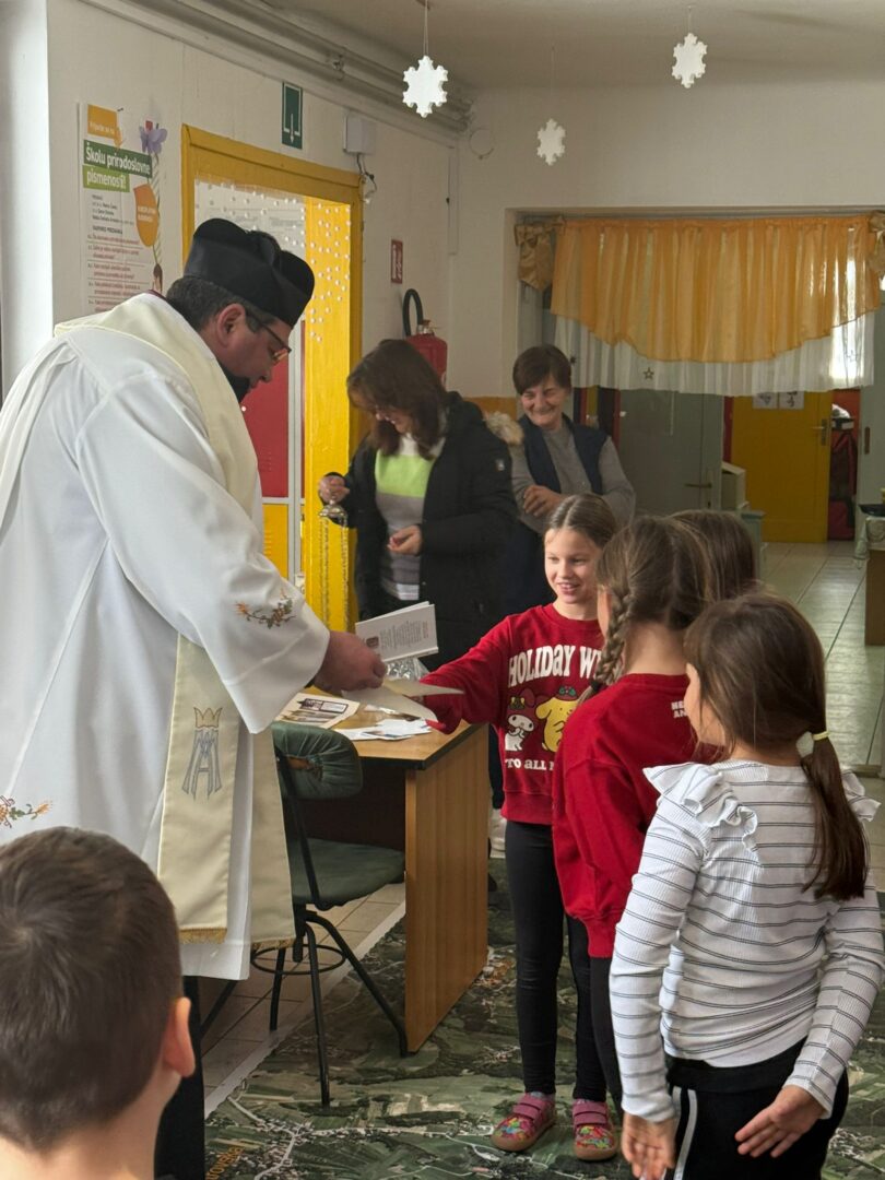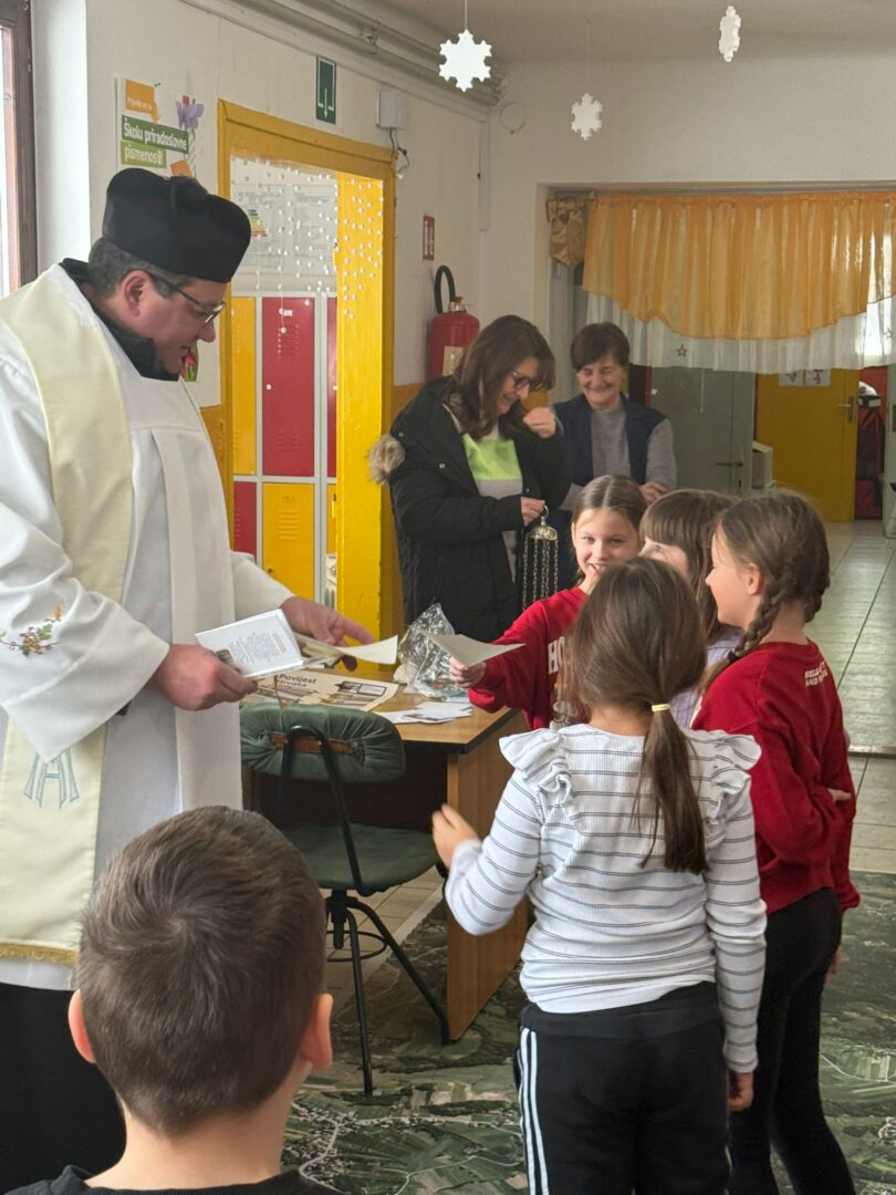 Ovaj tjedan posjetio nas je vlč. Anđelko Horvatić iz naše župe. Blagoslovio je obje škole, matičnu i područnu te učenicima i djelatnicima zaželio uspješnu godinu. Učenicima je podijelio prekrasne naljepnice s molitvama za obitelj. Zajedno smo molili i pjevali.
