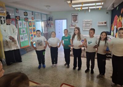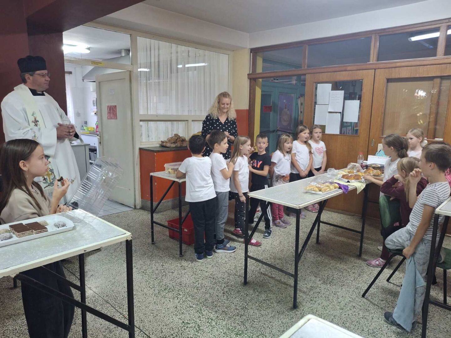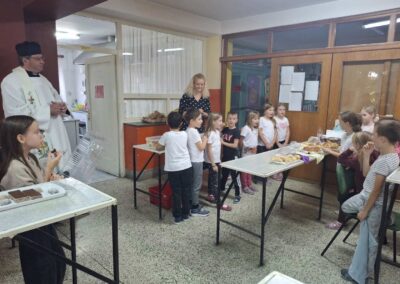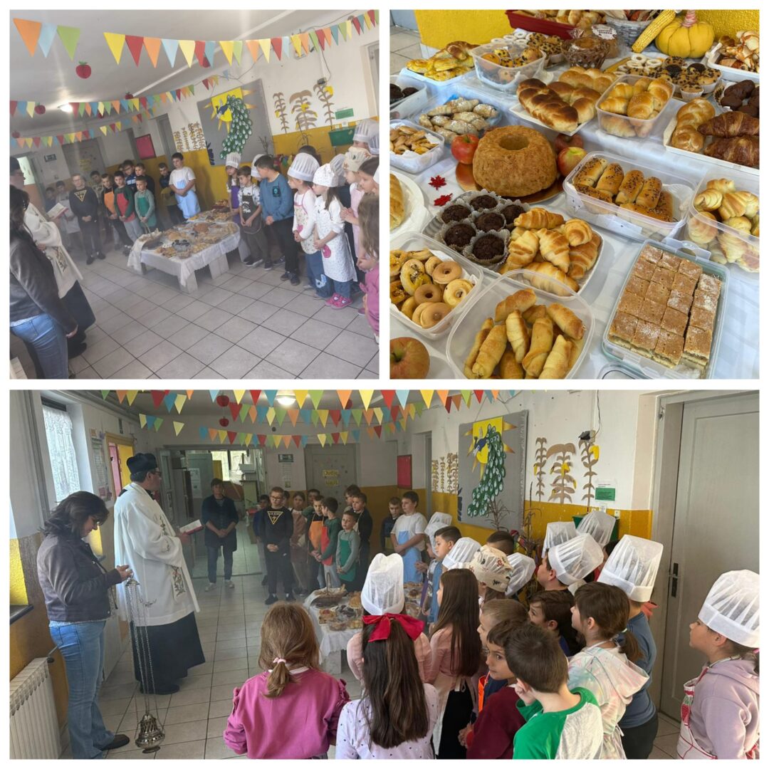 U Slatini smo 16.10. obilježili Svjetski dan hrane, Dan kruha i Dan jabuka. Učenici su zamijesili i ispekli fne prhke keksiće, ogulili, narezali i skuhali kompot od jabuka, a na kraju školskog dana zasladili su se svime što su pripremili. Donijeli su i puno domaćih krušnih proizvoda. Velečasni Anđelko došao je blagosloviti učenike i djelatnike škole i hranu koju su pripremili. Učenici su zaključili da bi barem jednom tjedno trebali imati takav radni dan. U matičnoj školi Dane kruha obilježli smo u petak, 17.10. Učenici razredne nastave pripremili su kratki prigodni program. Velečasni je blagoslovio našu hranu uz napomenu da je hrana lijek.