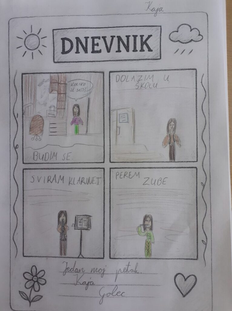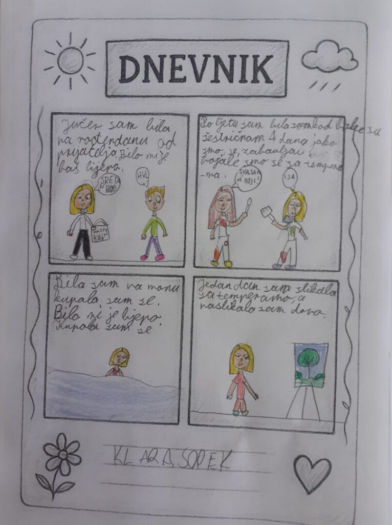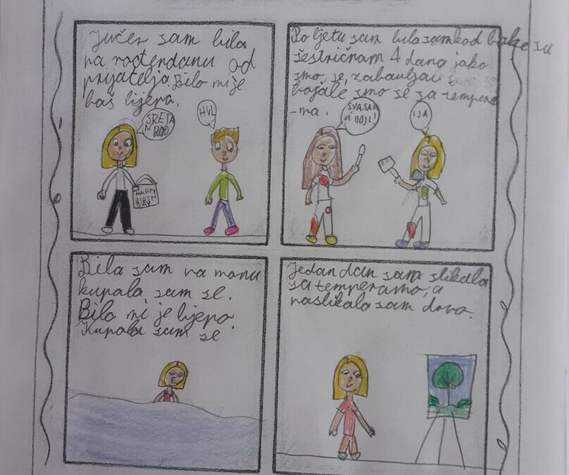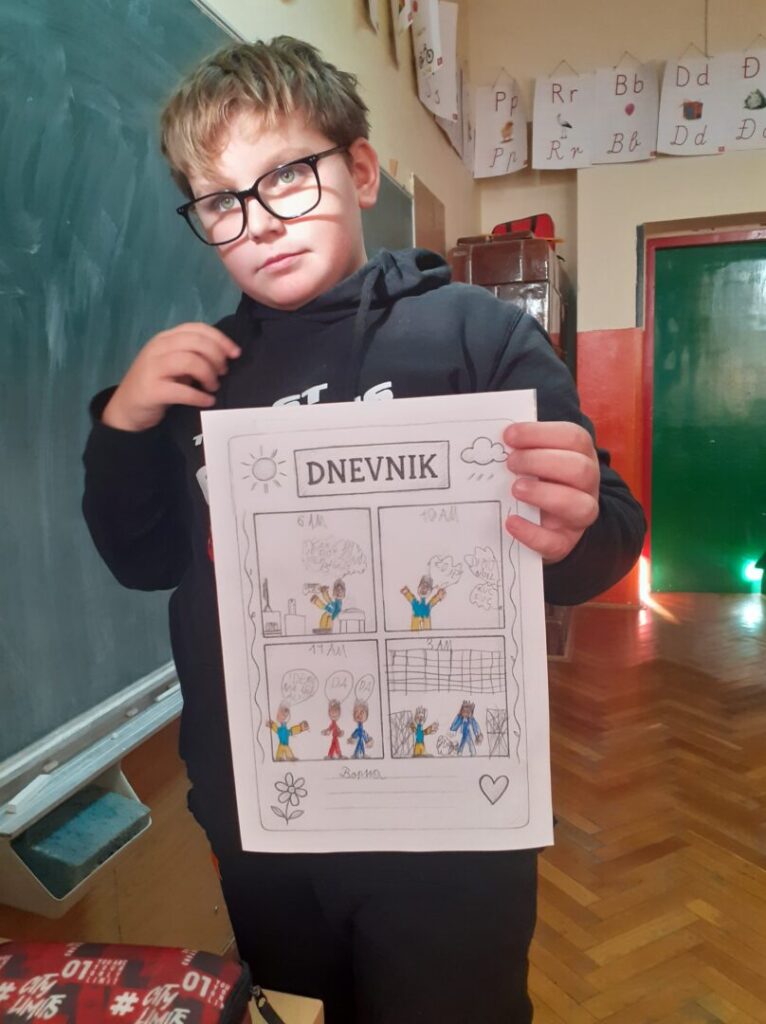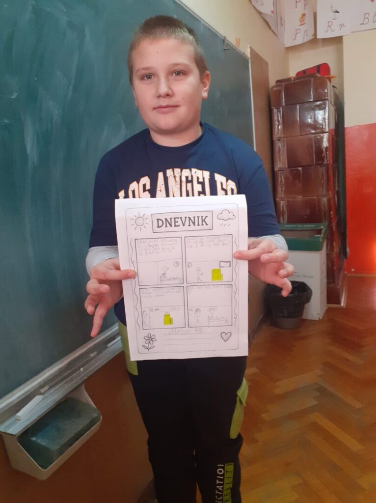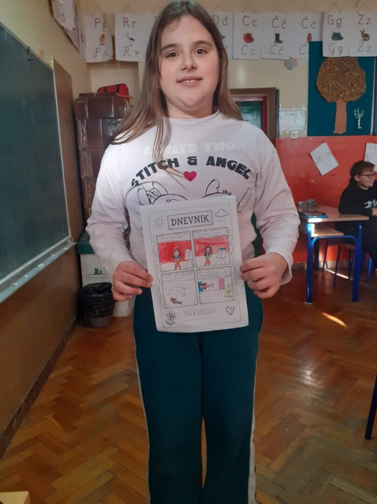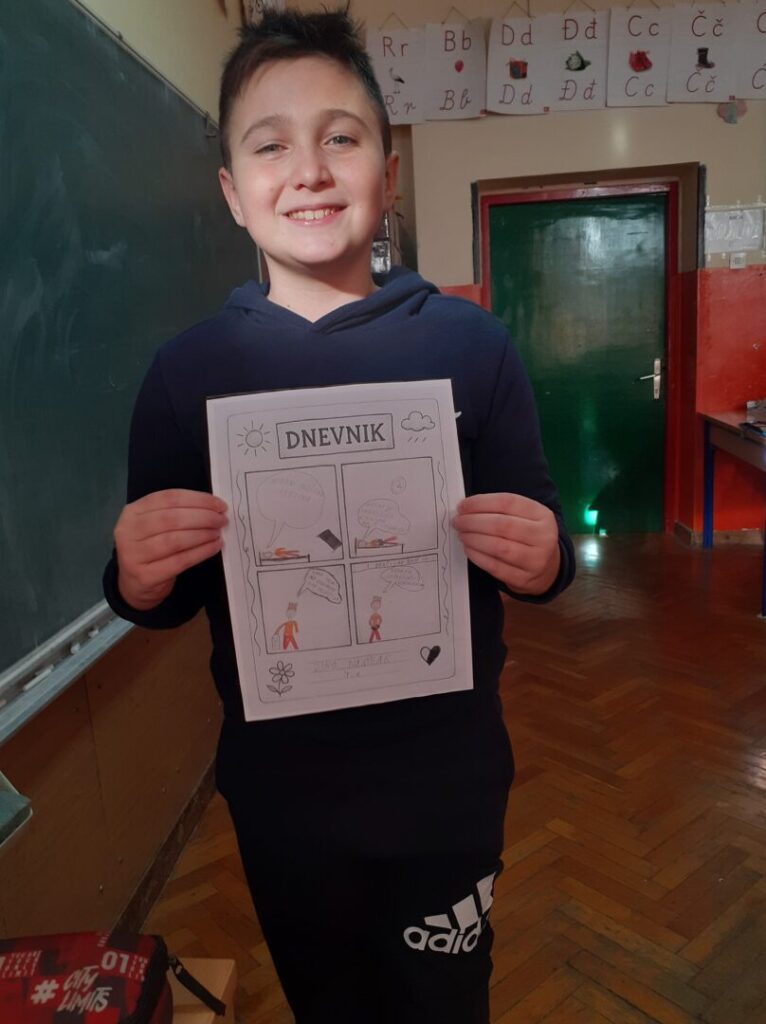 Učenici 4.a razreda sa svojom učiteljicom Irenom Šimunović sudjeluju u eTwinning projektu Lektira bez papira. Na kreativan način su obradili lektiru Gregov dnevnik te sudjelovali u radionici tijekom koje su s knjižničarkom Jasenkom razgovarali o knjizi, naučili što je strip a što dnevnik te zatim izradili vlastiti dnevnik u obliku stripa kroz 4 sličice. Svoje radove su prezentirali i pokazali da lektira itekako može biti drugačija i zanimljiva.