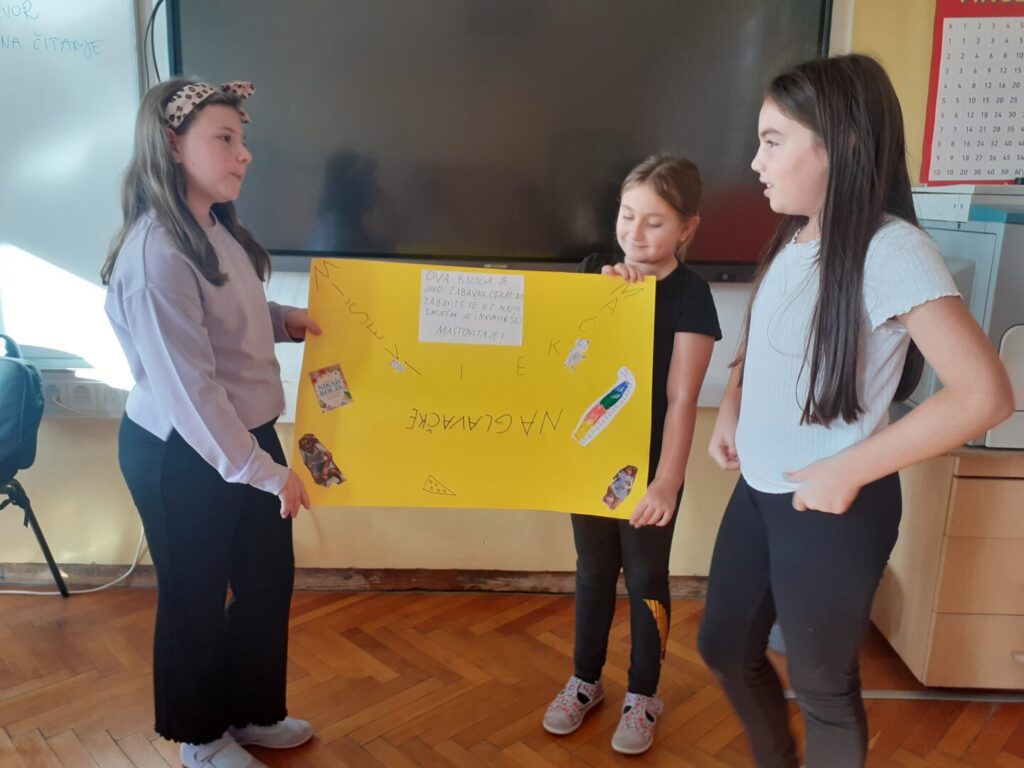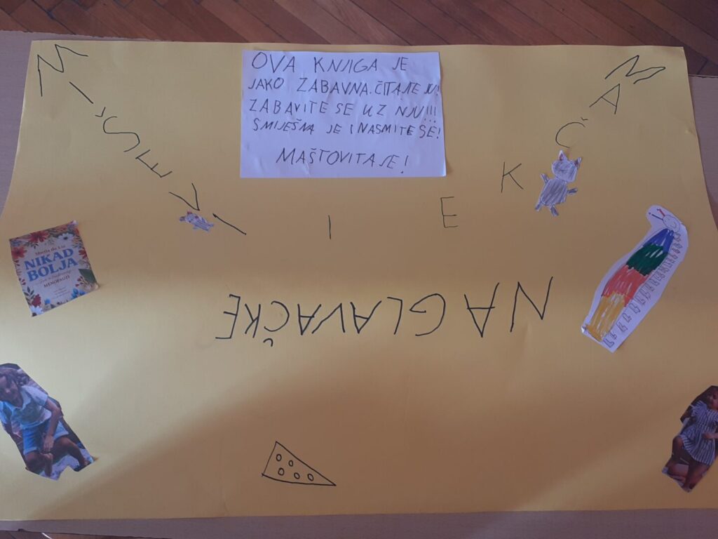 22. listopada učenici 3.a sudjelovali su u prvoj aktivnosti – obradili su lektiru Miševi i mačke naglavačke Luke Paljetka. Zadatak je bio izraditi reklamu za knjigu kojom će privući čitatelje. Tako je nastao reklamni plakat, radio oglas i TV reklama. Učenici su radeći u skupinama ozbiljno shvatili zadatke i pokazali suradnju i kreativnost. Na kraju sata prezentirali su svoje reklame te smo zaključili da su vrlo zanimljive i atraktivne.