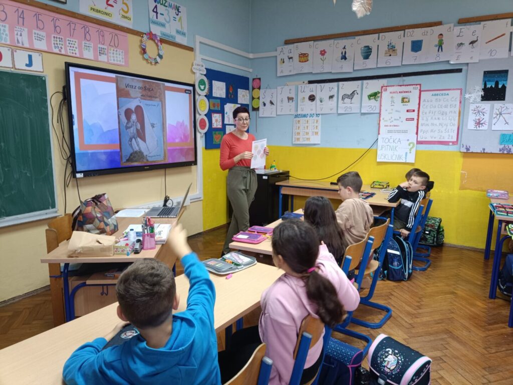 U središnjem dijelu radionice knjižničarka je čitala slikovnicu Ognjena Livade „Vitez od srca – moć tapkanja“, uz prikaz ilustracija. Učenici su aktivno sudjelovali u izvođenju vježbi tapkanja prateći priču – tapkali su po točkama na tijelu kao što su vrh glave, obrve, ispod oka, ispod nosa, brada, prsa i ispod ruke. Kroz interaktivna pitanja tijekom čitanja učenici su se povezivali s glavnim likovima i promišljali o vlastitim emocionalnim iskustvima.