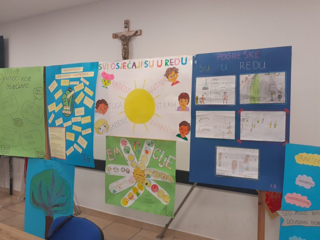 Nakon predavanja, posjetitelji su razgledali izložbu plakata kroz koju su svi razredi pokazali svoj put emocionalnog razvoja. Pripremili smo i letke o važnosti mentalnog zdravlja za odrasle i djecu te mali darak – vrećicu mirisnog čaja s porukom. Susret smo završili druženjem i pozivom na drugu aktivnost koja će povezati mentalno zdravlje, svjež zrak i tjelesnu aktivnost u prirodi.