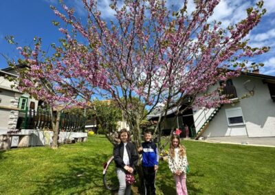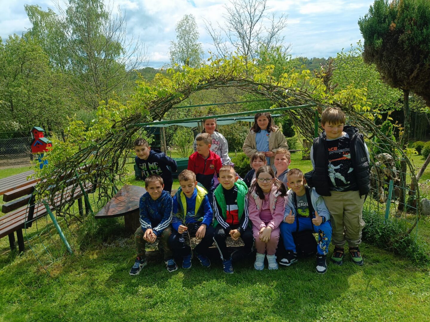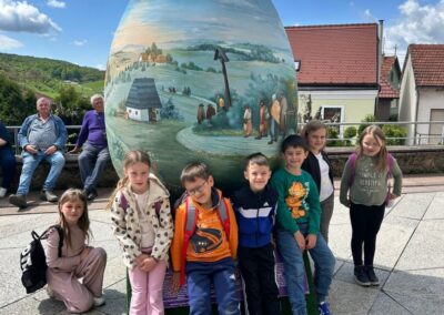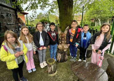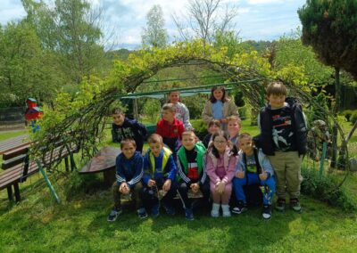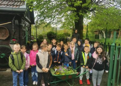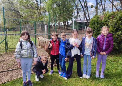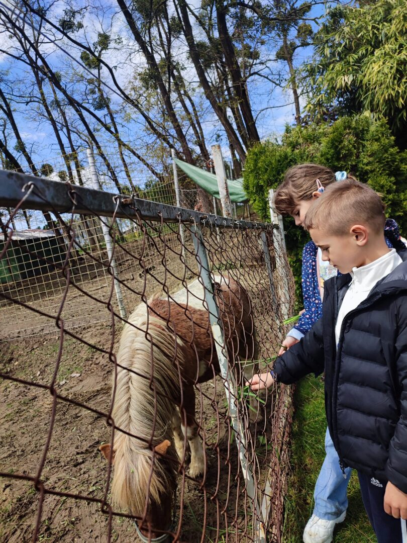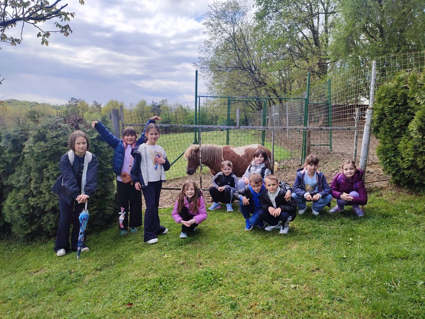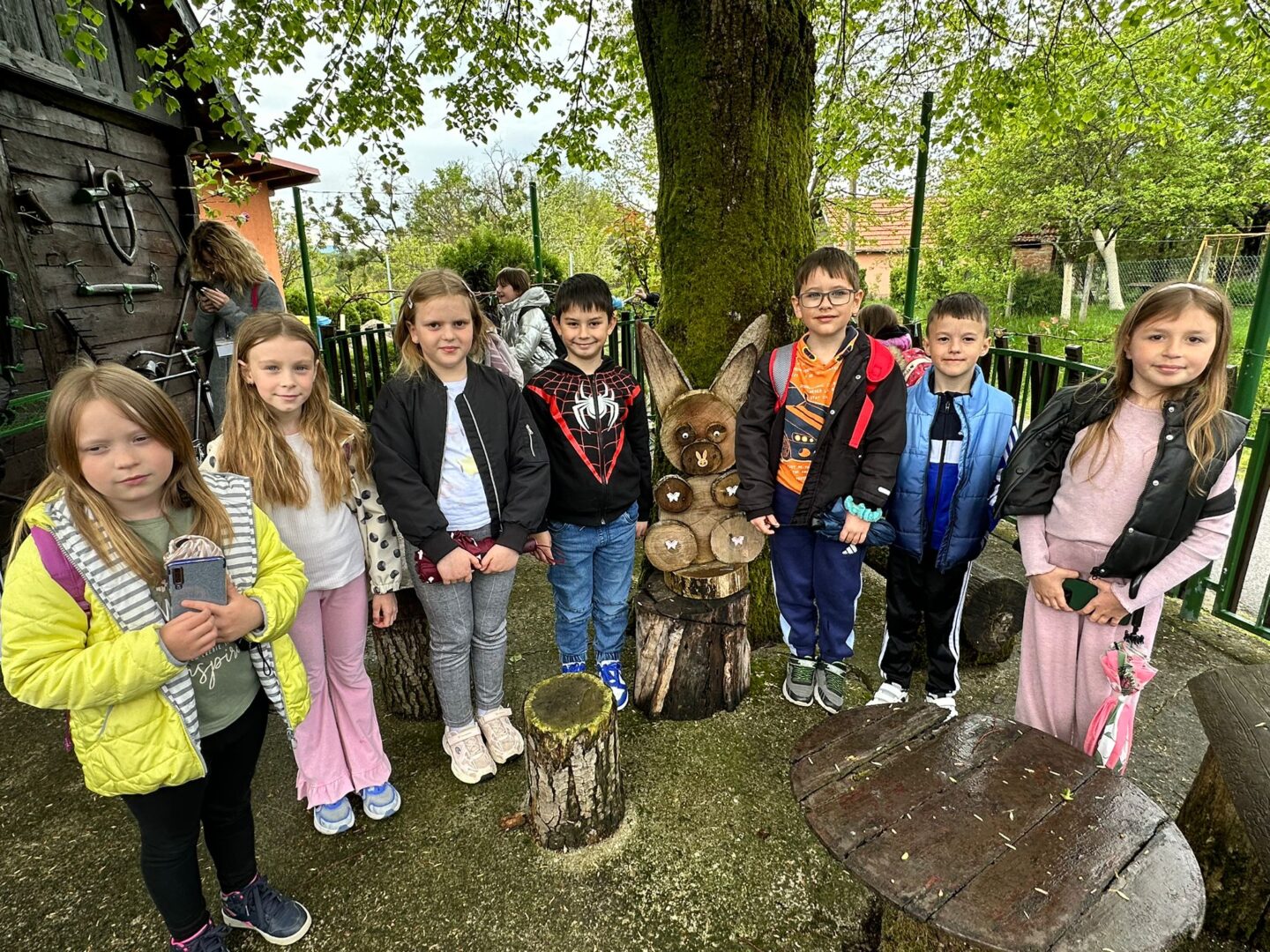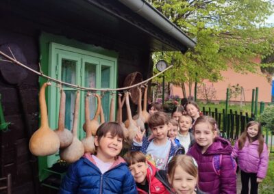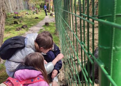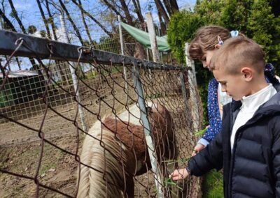 U Zoo Erveniku dočekali su ih g. i gđa. Hunjak i s veseljem ih proveli po svom malom zoo-u. Prekrasno uređeno dvorište ispunjeno je ograđenim prostorima u kojima žive različite životinje. Vidjeli smo više vrsta kokoši, a najzanimljiviji su nam bili Jurek i Katica – mini koke. U nekim nastambama živi više životinjskih vrsta koje se odlično slažu. Plahi jeleni žive s mini kozama. Domaćin je pomogao učenicima nahranniti koze pa su se jeleni, kad su vidjeli hranu, malo opustili i prišli bliže.