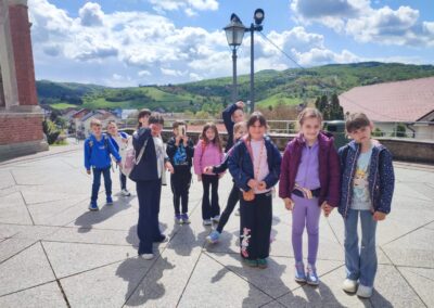 Puni dojmova nastavili smo prema Mariji Bistrici. Pred crkvom nas je dočekao vikar Vedran i s radošću nam ispričao sve o svetištu Majke Božje Bistričke.