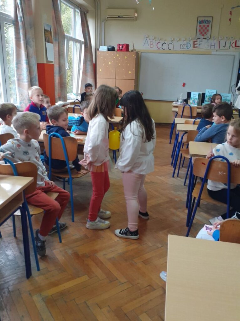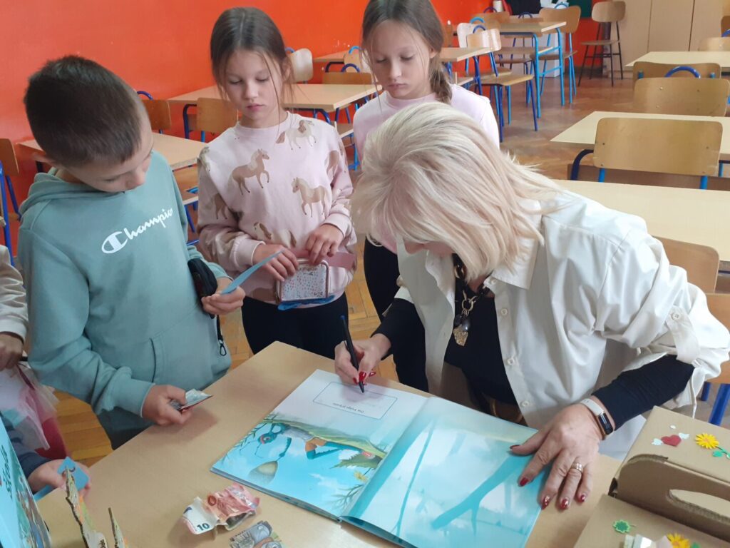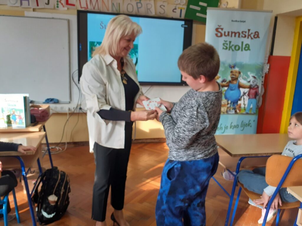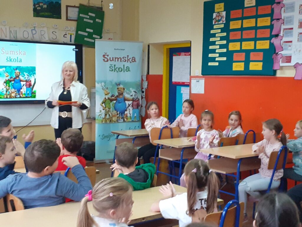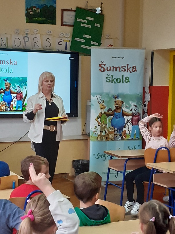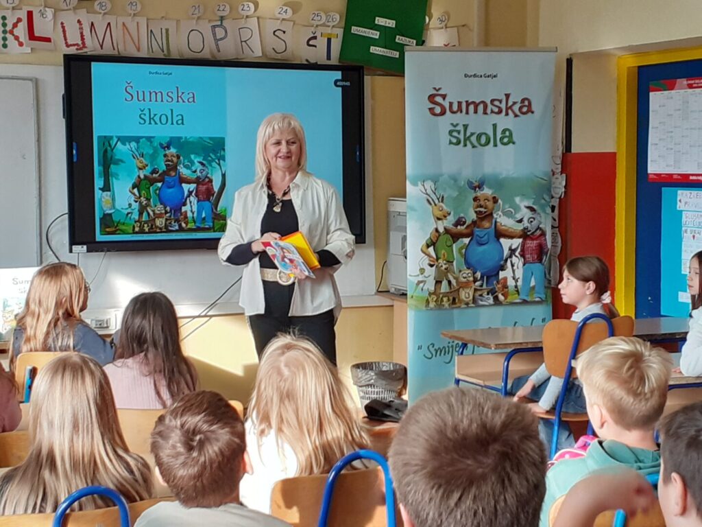 Gošća je s puno topline predstavila svoju knjigu Šumska škola. Od samog početka vladalo je veselo raspoloženje – književnica je učenike uključila u zanimljive pitalice, potaknula ih na razgovor o likovima i porukama priče, a zatim im i pročitala svoju knjigu. Kako se gospođa Gatjal bavi mentalnim zdravljem, razgovarala je s učenicima o važnosti pomaganja jedni drugima, o prijateljstvu i suradnji te smijehu kao lijeku za sve bolesti. Nakon razgovora uslijedio je kreativni dio susreta – igre i ukrašavanje straničnika.