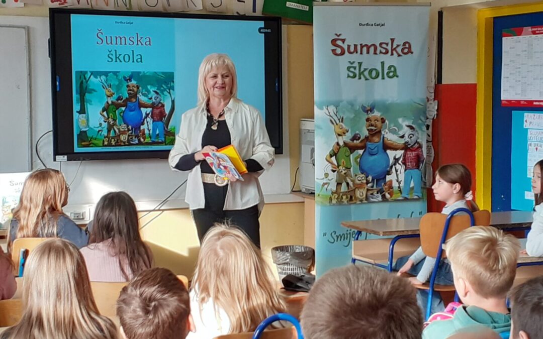 Gošća je s puno topline predstavila svoju knjigu Šumska škola. Od samog početka vladalo je veselo raspoloženje – književnica je učenike uključila u zanimljive pitalice, potaknula ih na razgovor o likovima i porukama priče, a zatim im i pročitala svoju knjigu. Kako se gospođa Gatjal bavi mentalnim zdravljem, razgovarala je s učenicima o važnosti pomaganja jedni drugima, o prijateljstvu i suradnji te smijehu kao lijeku za sve bolesti. Nakon razgovora uslijedio je kreativni dio susreta – igre i ukrašavanje straničnika.