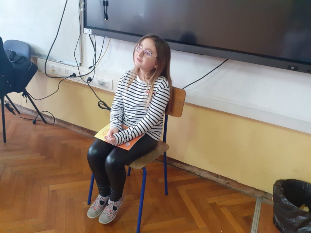 U sklopu eTwinning projekta ”Lektira bez papira” učenici 3.a razreda obradili su lektirno djelo „Vlak u snijegu“ kroz kreativnu aktivnost intervju s likovima. Pripremali su pitanja za glavne likove te preuzimali njihove uloge, odgovarajući iz njihove perspektive. Na taj su način razvijali razumijevanje književnog teksta, empatiju i komunikacijske vještine, te proveli cijeli sat u zanimljivom međusobnom razgovoru.