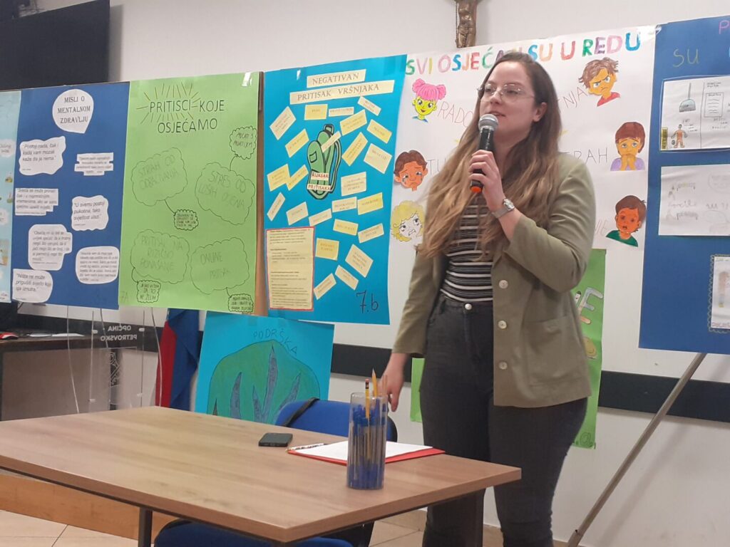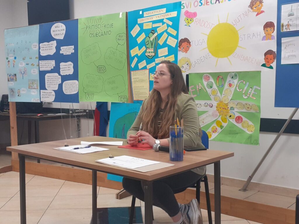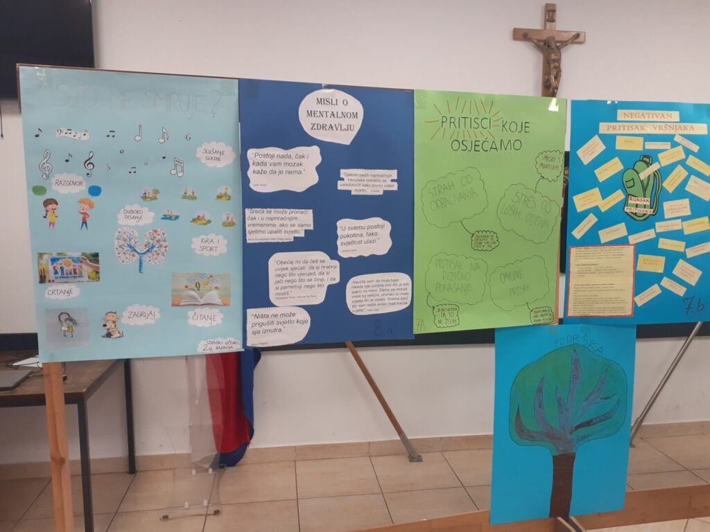 Nakon predavanja, posjetitelji su razgledali izložbu plakata kroz koju su svi razredi pokazali svoj put emocionalnog razvoja. Pripremili smo i letke o važnosti mentalnog zdravlja za odrasle i djecu te mali darak – vrećicu mirisnog čaja s porukom. Susret smo završili druženjem i pozivom na drugu aktivnost koja će povezati mentalno zdravlje, svjež zrak i tjelesnu aktivnost u prirodi.