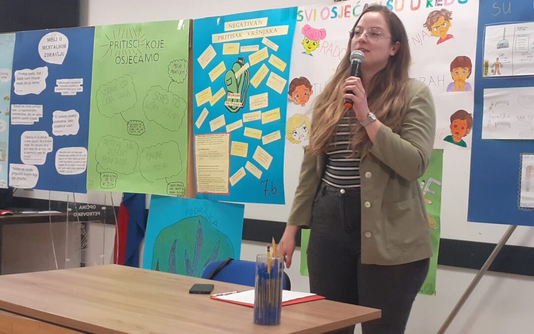 Nakon predavanja, posjetitelji su razgledali izložbu plakata kroz koju su svi razredi pokazali svoj put emocionalnog razvoja. Pripremili smo i letke o važnosti mentalnog zdravlja za odrasle i djecu te mali darak – vrećicu mirisnog čaja s porukom. Susret smo završili druženjem i pozivom na drugu aktivnost koja će povezati mentalno zdravlje, svjež zrak i tjelesnu aktivnost u prirodi.
