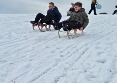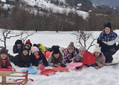 Učenici su po povratku u školu nastavili sa zimskim radostima. Spremni su došli u školu, obukli svoje zimske kombinezone, hlače, jakne, čizme, kapi, šalove i rukavice, uzeli u ruke sanjke te se prepustili uživanju. U galeriji možete vidjeti kako im je bilo zabavno i koliko su uživali.
